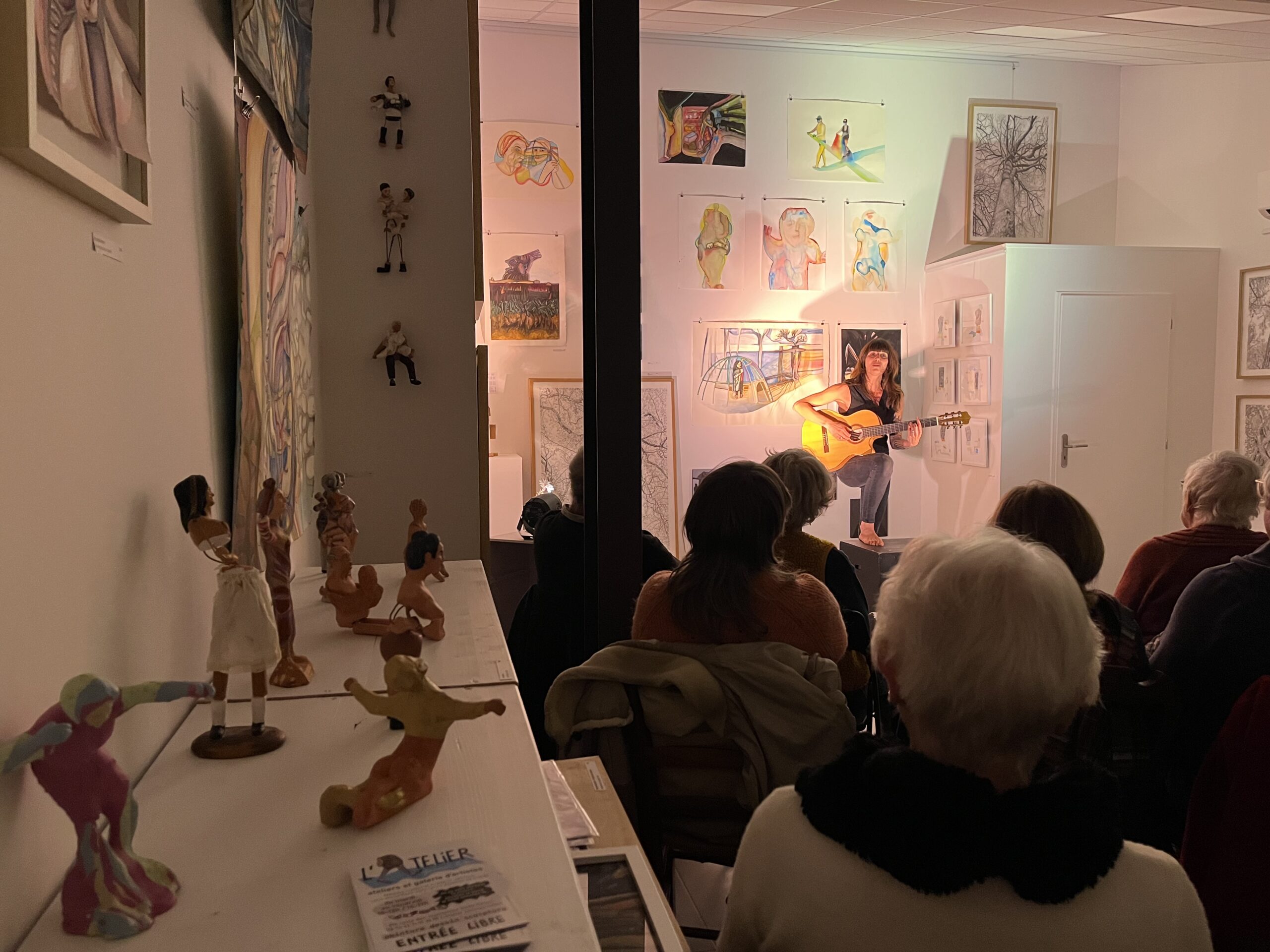 Pour la première fois, dans notre nouvelle galerie, nos œuvres étaient mises en valeur par cette lumière, la belle musique de Brassens et la présence théâtrale de Laureen @Lola Zolas. Merci